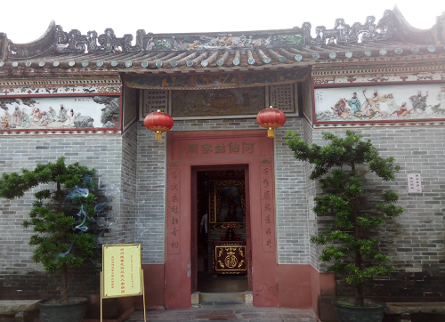 崔与之一路之隔的广汕路南进去10多米便是坑贝古村,因附近的金坑河产贝而得名。村内的民居均建于明末清初时期,已历经百年风雨,是广州市历史文化保护区。此村地势开阔,一排起伏错落的传统民居纵向依次排开,祠堂、书房、村屋、雕楼、古井、石碾,一应俱全。广场左右两侧各有两块旗杆石,表明这里也曾是书香门第所在。“式谷毛氏祠”是整个建筑群的核心。相传毛家村民居建于明末,但村庄的历史却可追溯至南宋嘉定年间,当时第一个来此落户的是一个叫毛富兴的山西人。几百年来,不同族姓在此和谐杂居,而今,富裕后的村民另选地方建小洋楼,传统民居得以完整保留。多数房子大门紧锁,少数几间依然住人,阶前冷落青草生,虽有些破败荒凉,但村后的山林和广场前的风荷塘、远处的田舍飘来的阵阵清香,倒也给古村涂上了一抹清雅。