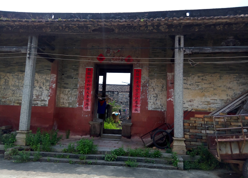 中新镇与广汕路垂直的丁字路北进约10公里便是福和镇,该镇东边的田美村便是我们当年社教驻地。该村原叫“田尾”,因其名不雅而美化为“田美”。田美村以黄姓为主要姓氏。1991年我们在此社教时该村经济发展较落后,两层的洋房极为少见因而显得出众,而今情况刚好相反,当年不为人所重视的传统岭南民居反而更加显眼了。村中池塘边便有几座民居,虽然很有些破败,但门上贴的各种喜庆对联倒也让人感觉祖屋和传统民居在当地人心中的份量。